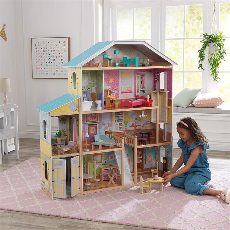 Vietä tunteja leikkiä Majestic Mansion Dolls Housen kanssa. Tässä 136 cm korkeassa kartanossa on 4 kerrosta, 8 huonetta, upea portaikko ja liukuhissi lapsesi nukkejen kuljettamiseen. Tämä tilava nukketalo sisältää 34-osahuonekalujen tarvikepaketin, jossa lapset voivat viettää tuntikausia hauskaa tutustuen Majestic Mansioniin 12-tuuman (30-cm) muotinukkeineen.