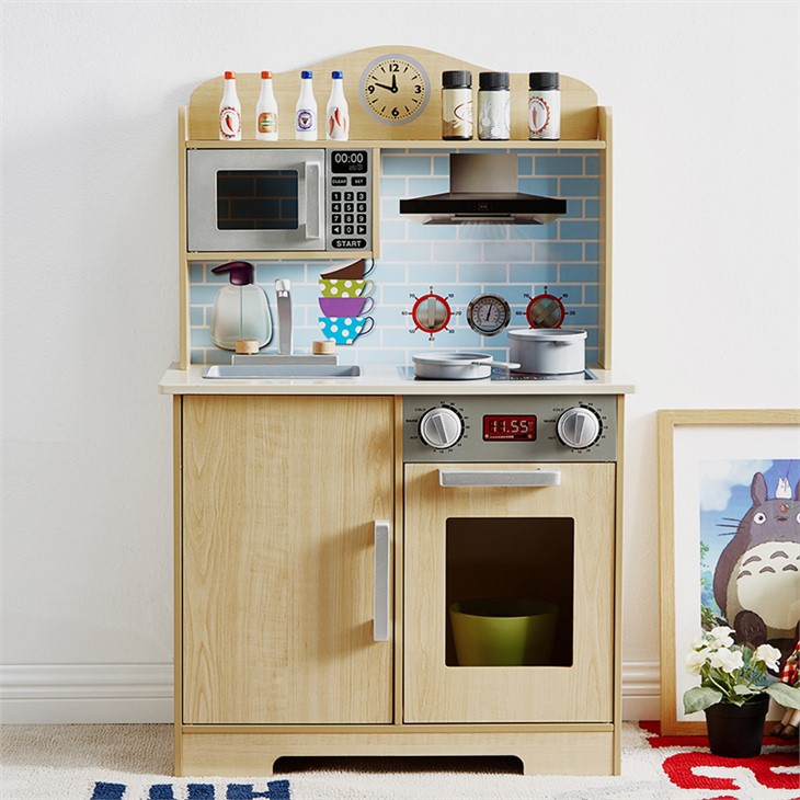 Tämä sarja on suosittu keittiölelumalli. Alla on suuret kaapit, kolme paistamisastiaa, kattilat, kolme kytkinnuppia, hana, pesuallas ja maustepullo.